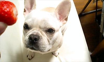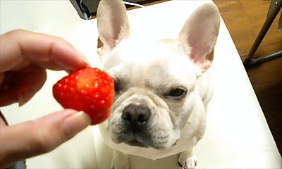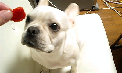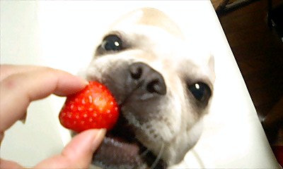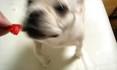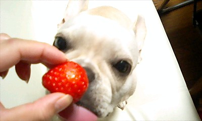 お嬢さんにイチゴを見せると、一目散に飛んできてこの姿勢。w