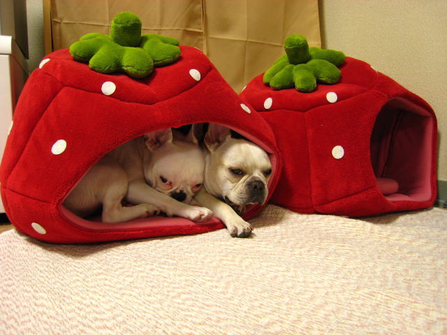 なぜかイチゴは、まちゃよの寝床を時々侵略したがります。