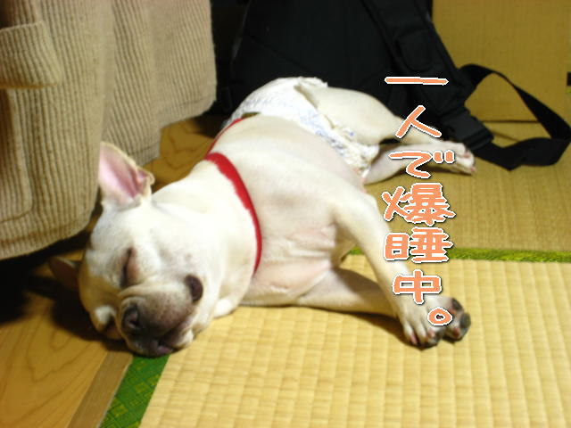 午前中の散歩と、実家に到着してから暴れて疲れたのとが合わさって、