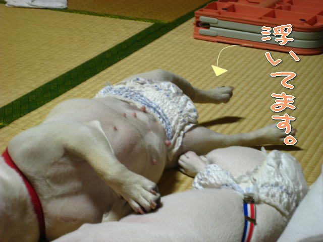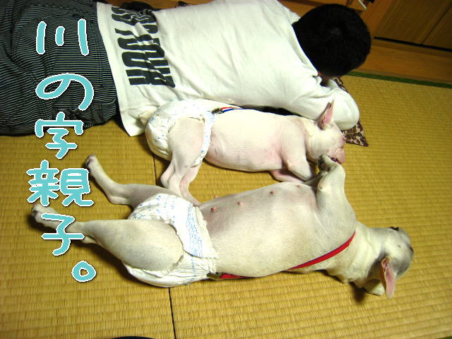 約3時間の散歩で昼にはバテバテ気味だったまちゃよとイチゴ。