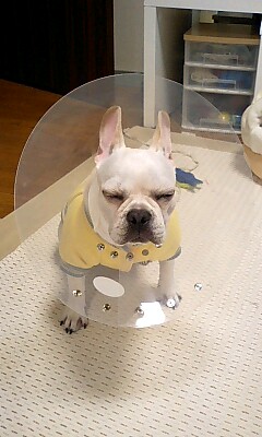 初めてエリザベスカラーを着けるまちゃよ。