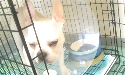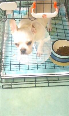 エリザベスカラーがぶつかる事に腹を立てるまちゃよ。